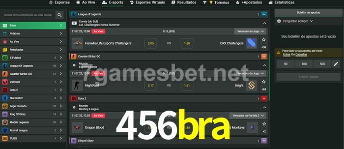 O 456bra oferece uma grande seleção de opções de apostas em e-sports com probabilidades competitivas